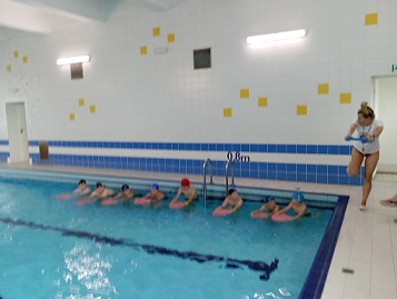 ,, W Rodzinie siła !’’ Zajęcia odbywały się na Basenie Miejskim POSIR przy ul. Korczaka w Pionkach, 2 razy w tygodniu, łącznie 15 godzin nauki pływania po 45 minut każda. Na początek Pani Martynka- instruktor nauki pływania dała dzieciom wiele ważnych wskazówek dot. bezpieczeństwa, które należy przestrzegać na basenie. Po krótkim instruktażu nastąpił kolejny proces tj. technika oswajania się z wodą. Ta wiedza okazała się kluczowa bo przełamywała ewentualne lęki oraz budowała pozytywne skojarzenia związane z kontaktem z wodą. Na tym etapie pomocne okazały się proste ćwiczenia, które zwiększyły komfort w wodzie oraz nauczyły dzieci korzystania z desek pływackich lub innych akcesoriów do pływania. Te działania stopniowo zwiększały u dzieci pewności siebie. Pomimo ,że były to zajęcia grupowe, Pani Martyna starała się indywidualnie podejść do podopiecznych, co dało każdemu pływakowi osiągnięcie postępów we własnym tempie. Każdorazowo podczas 15 godzinnych lekcji, dzieci uczyły się czegoś nowego i szlifowały nabyte już pływackie umiejętności. Po raz kolejny dziękujemy wszystkim dzieciom za obecność i zaangażowanie na zajęciach a ich opiekunom dziękujemy za wsparcie i zaufanie.